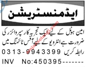 Amin Hotel Peshawar Jobs 2026 – Supervisor Positions