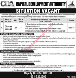 CDA Islamabad ne multiple management level positions announce ki hain. Exact posts ka detail official advertisement mein hota hai, lekin commonly in type ki positions hoti hain: