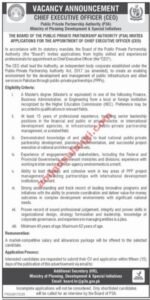 Ministry of Planning Development and Special Initiative ke under yeh job announce hui hai jahan CEO (Chief Executive Officer) ki position ke liye applications invite ki ja rahi hain.