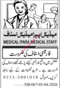 Job Title: Pharmacy Staff Of Paramedical Jobs 2026