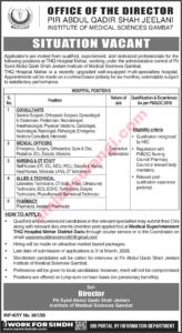 Pir Abdul Qadir Shah Jeelani Institute Of Medical Sciences ne apne latest recruitment 2026 ke liye vacancies announce kar di hain. Ye job opportunity un logon ke liye hai jo medical field mein career banana chahte hain or Dadu, Sindh mein kaam karna chahte hain. Agar aap eligible hain aur apni career growth chahte hain, to ye jobs aap ke liye perfect chance hain.