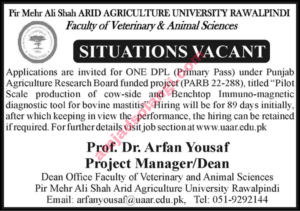 Pir Mehr Ali Shah Arid Agriculture University Rawalpindi Pakistan ki ek well-known government university hai jo agriculture or related fields mein education or research provide karti hai. Har saal yeh university different departments mein skilled or talented logon ko hire karti hai.
