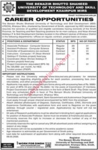 Shaheed University of Technology & Skill Development Khairpur Sindh ki ek mashhoor government university hai jo technical or skill-based education provide karti hai. Har saal yeh university talented or hardworking candidates ko hire karti hai taa ke education system ko strong banaya ja sake.